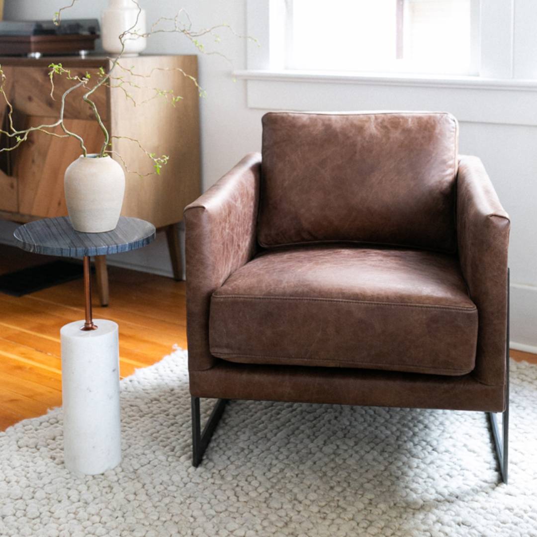 The Lexi accent chair was designed to respond to the new lifestyle, combining comfort and functionality with a simplistic modern form. With everything you need from an occasional chair, Lexi is contemporary luxe with its fully upholstered, neutral top-grain leather, deeply comfortable seat, and eye-catching, semi-cantilevered frame design. Straight, clean lines with a statement aesthetic that will fit idyllically into your reading corner or sofa-side for added seating for your social environment.