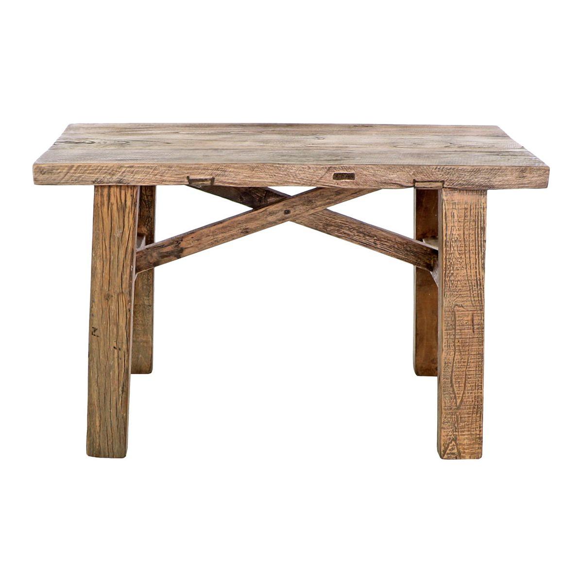 Our Workshop Side Table Bench offers a rustic, craftsman-inspired design for the modern home. This versatile piece is made from reclaimed elm doors and can function as a bench or a side table. Its simple and utilitarian style adds a unique touch to any room.