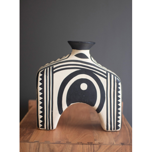 Black and White Paper Mache Arched Vase