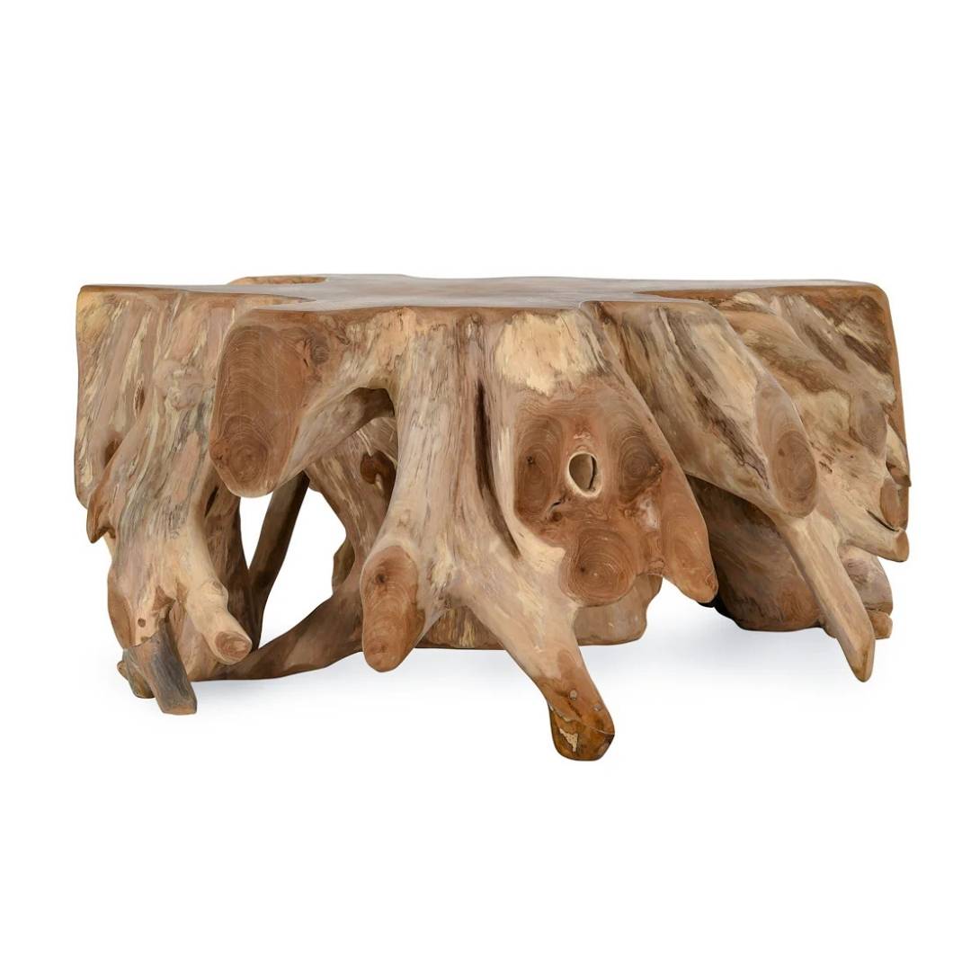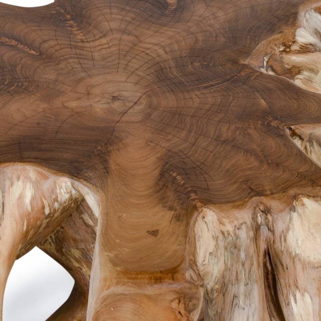 Each table features a dramatic sculptural base with intricate roots, rich grain, and flowing textures. A bold statement piece for eco-inspired interiors. Perfect as a functional work of art in living rooms or lounge spaces. Sustainable, one-of-a-kind, and timeless, this teak root coffee table brings earthy elegance to any home