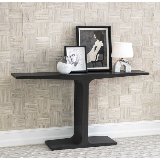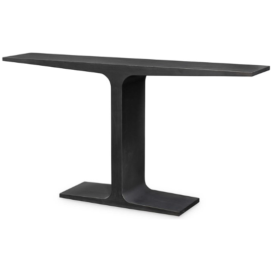 Discover sleek, modern design with our I-Beam Console Table. Inspired by cantilevered architecture and historic anvils, this industrial piece is finished in blackened burnished steel. Perfect for adding a unique touch to any space.