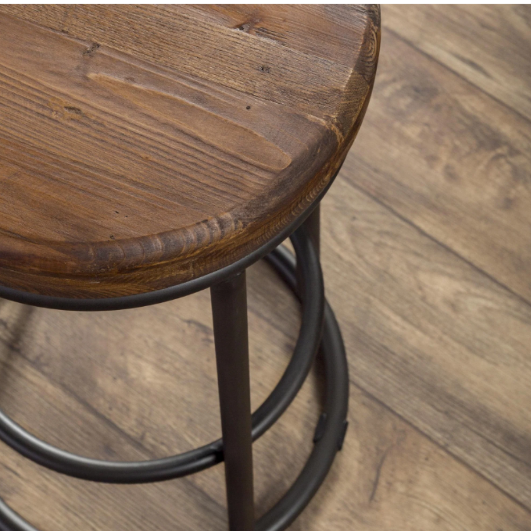 Rooted in industrial charm yet refined for modern spaces, the Brantner Counter Stool pairs a rich, hand-finished wood seat with a bold, matte black metal frame. Its sleek silhouette and sturdy construction offer effortless versatility, making it the perfect balance of rustic warmth and urban sophistication for any kitchen or bar setting.