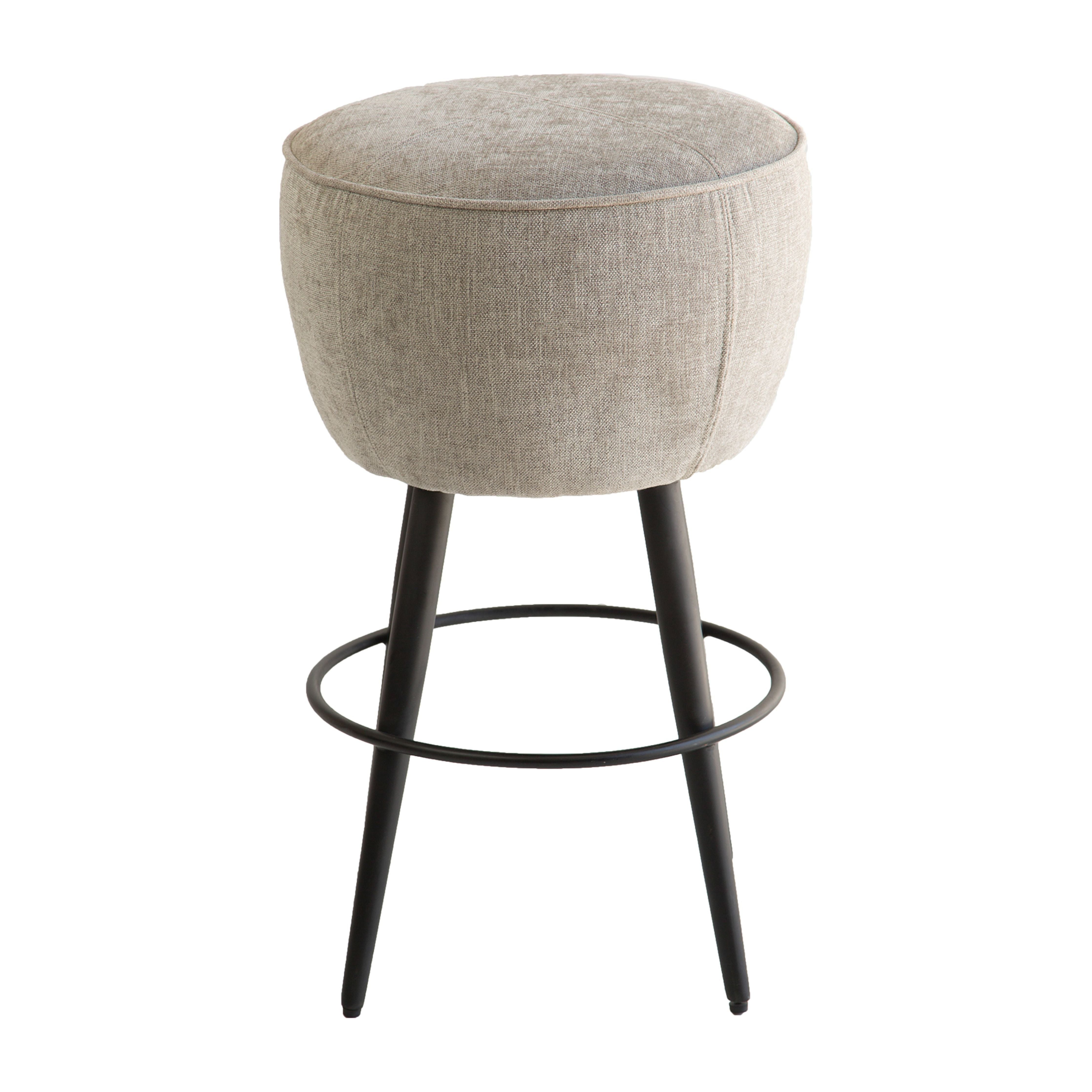 This hand forged black iron counter stool with grey upholstery adds a touch of sophistication to any kitchen or bar area. The sturdy construction ensures long-lasting durability, while the plush seat provides comfort for extended sitting. Elevate your space with this elegant and functional piece.