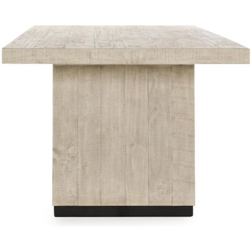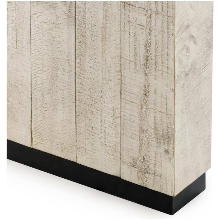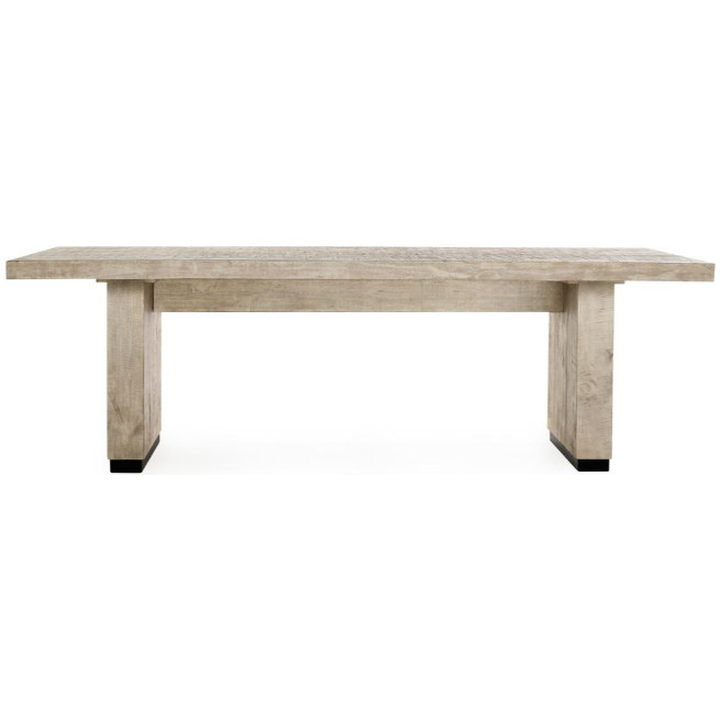 Crafted from reclaimed pine, the Leonard Dining Table boasts a unique whitewash finish and striking contrasting black feet. This expertly designed table offers both sustainable materials and stylish accents, making it the perfect addition to any dining space.