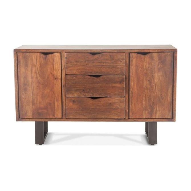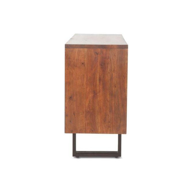 Expertly crafted from hand-selected premium Acacia wood, this Loft Sideboard features a warm contrast of faux live-edge and deep walnut finish against its sleek steel base. Elevate your space with the superior quality and modern aesthetic of our Loft collection.