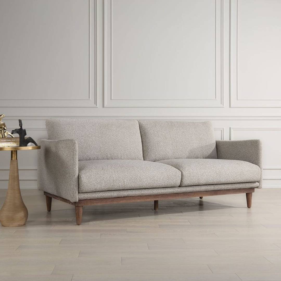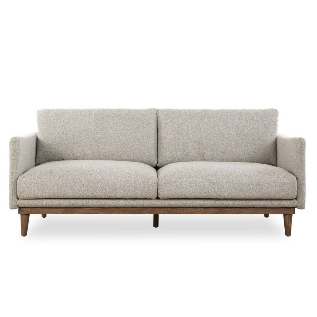 Relax in the sink-in comfort of the Marlowe sofa. Featuring clean modern lines and resting on a solid oak base in walnut with gray ceruse.