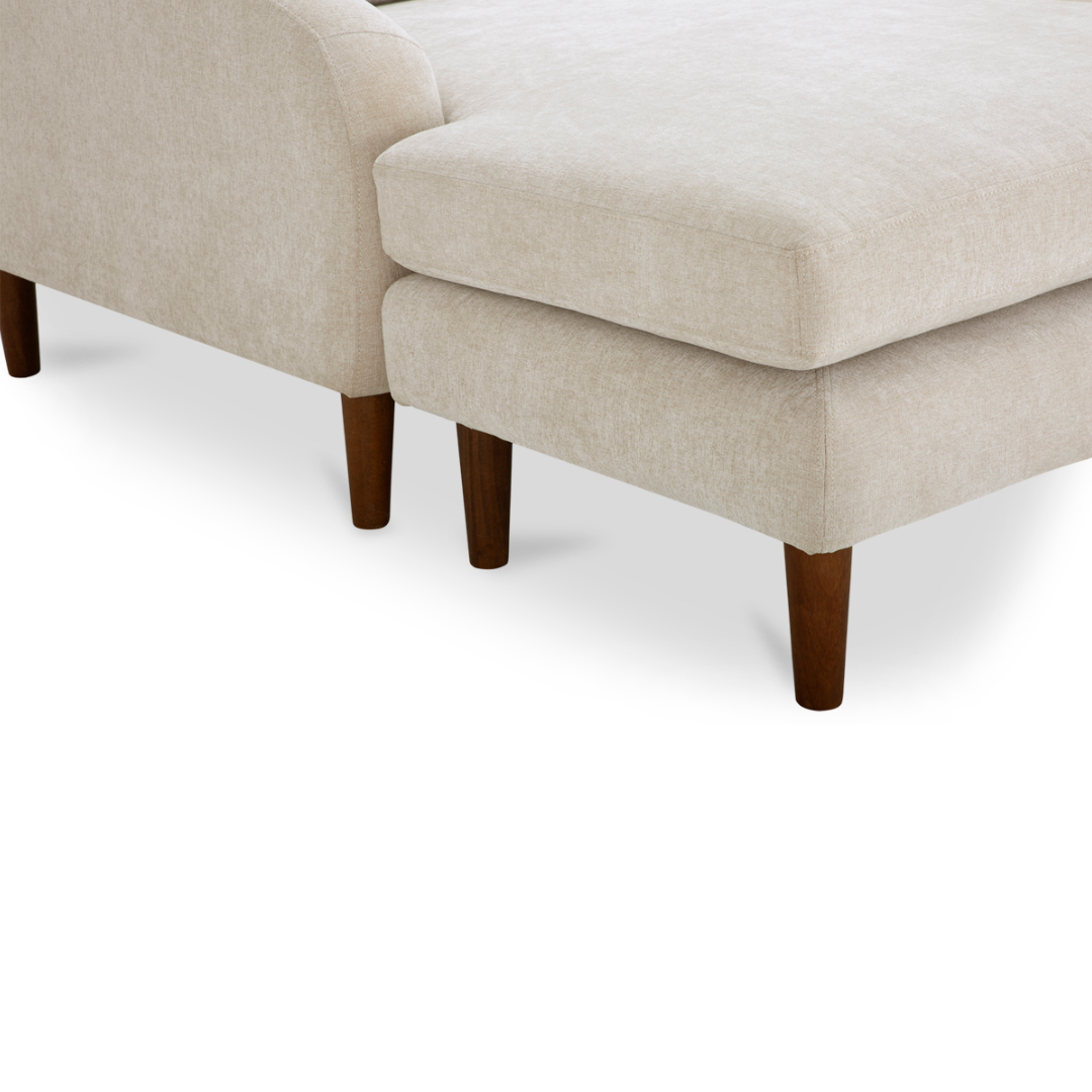 The Ronald Modern Sectional with Reversible Chaise offers a sleek, sculptural silhouette and luxuriously plush cushions that bring both style and ease to your living space. Wrapped in rich upholstery and anchored by tapered wood legs, it’s a versatile showpiece designed for effortless lounging and timeless sophistication.