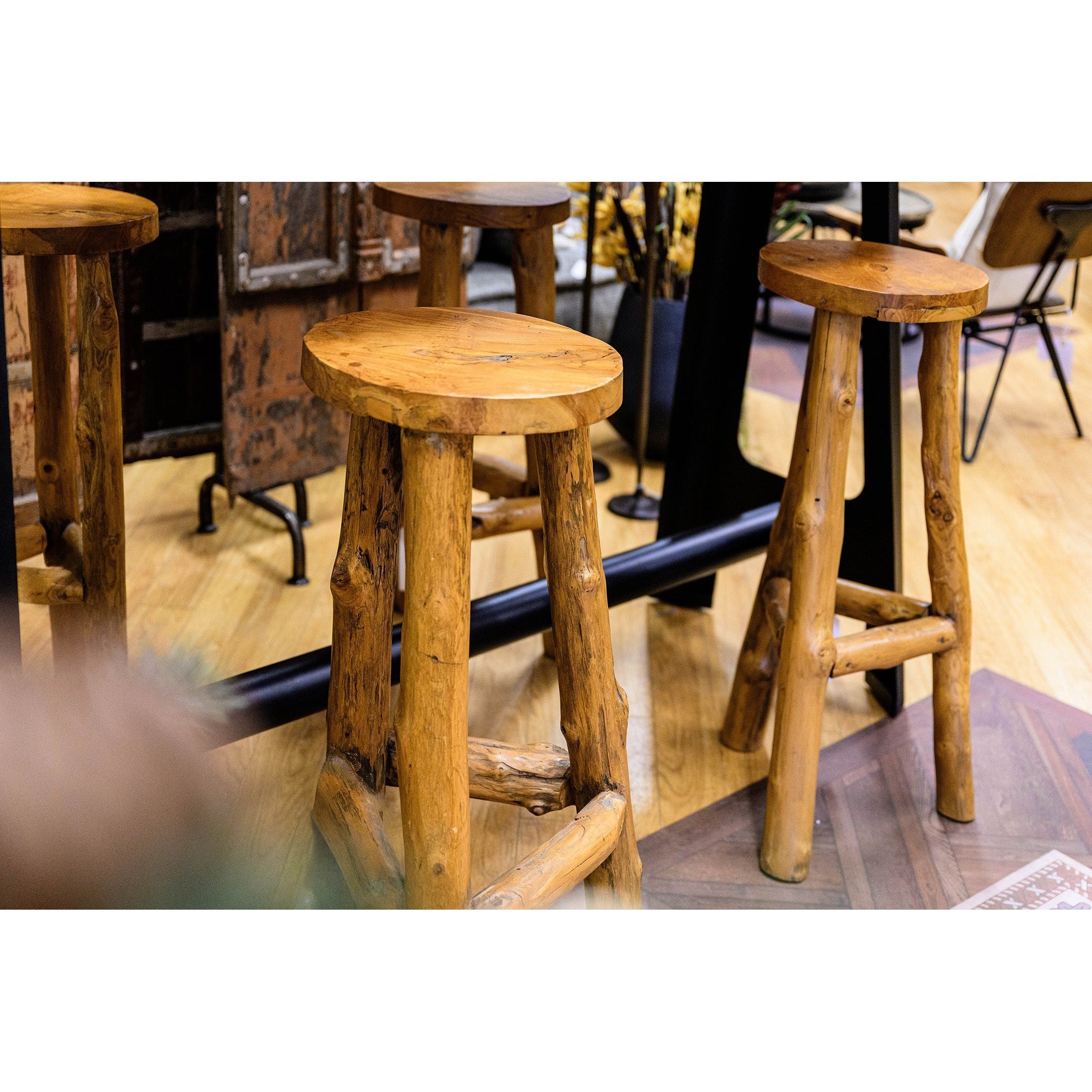 Experience the blend of rustic charm and modern design with our unique wooden barstool, featuring organic knobby legs. This high-quality wooden piece not only offers robust stability but also adds a stylish touch to your decor, providing a comfortable seating experience.