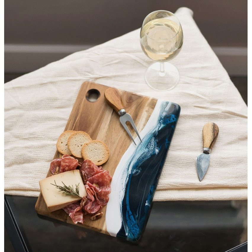 Crafted from beautiful Acacia hardwood and eco-friendly epoxy, these unique cheese boards are a must-have addition to your serve ware collection. Ideal for serving groups of 2-4, they make excellent gifts for housewarmings, weddings, or even as a self-indulgence. Imagine hosting a girls' night in, a romantic date night, or a friendly get-together, showcasing your culinary artistry on this stunning cheeseboard!
