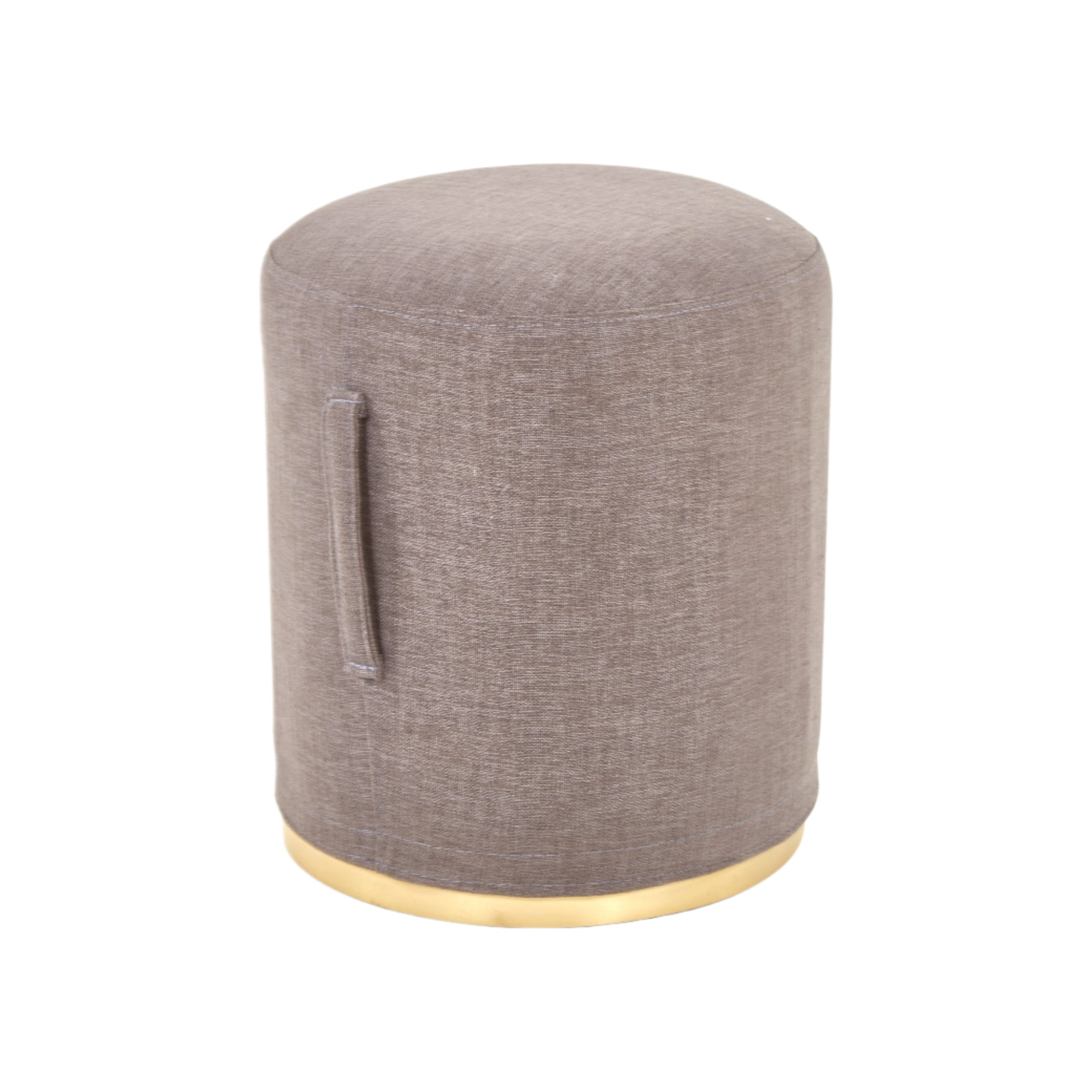 This dark grey ottoman adds a touch of elegance to any room. The iron frame and brass ring provide sturdy support, while the soft grey upholstery offers both comfort and style. Perfect for resting tired feet or for additional seating.