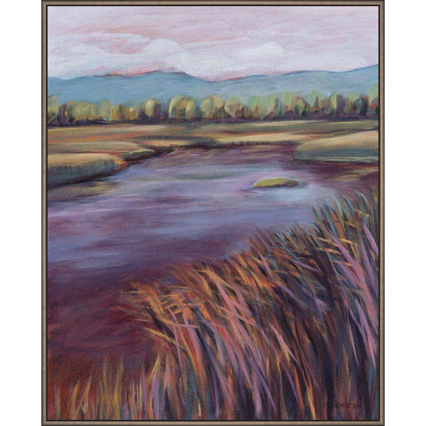 Bestie River features a textured finish on canvas, presented in a sleek floater frame. Enhance your home decor with this art piece's unique style and expert craftsmanship. Perfect for adding depth and dimension to any room.
