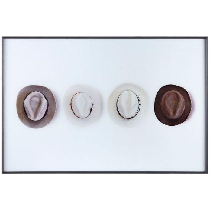 Introducing "Billings" - a captivating print on tempered glass that pays homage to the timeless style and rugged spirit of the Wild West. This piece of art showcases four elegantly arranged Western hats against a clean white background. Add a touch of Western charm to any room.