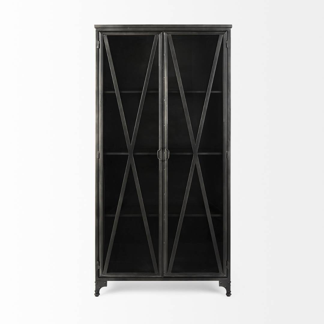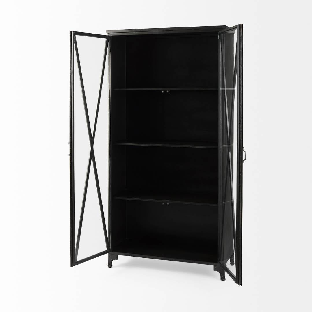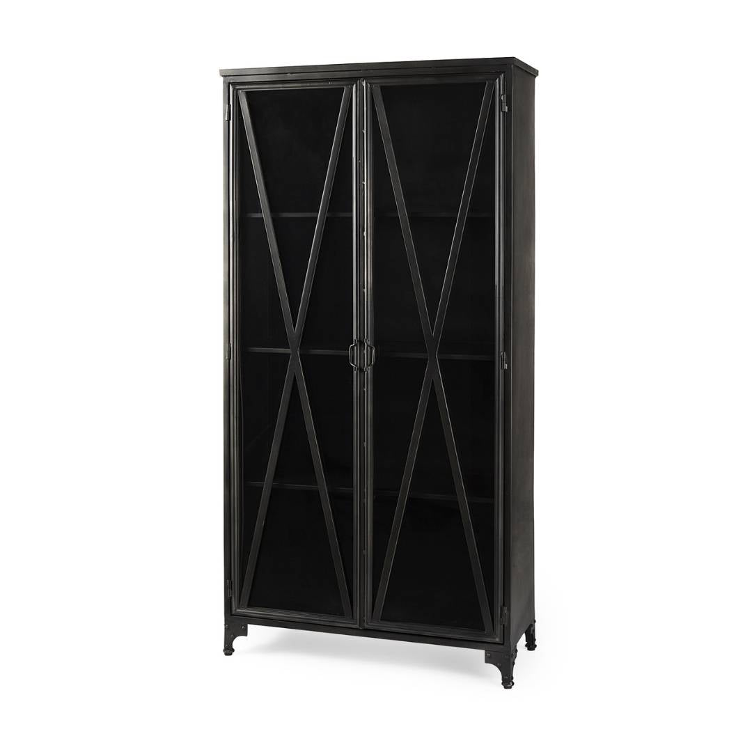 The Marseille Metal Display Cabinet embodies refined strength, pairing sleek metal framing with glass-paneled doors in a striking X-cross design. Its bold silhouette and expert-crafted details create a sophisticated showcase for curated objects, merging artistry with enduring craftsmanship.