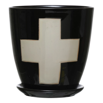 Crafted with exquisite stonework, the Black/White Cross Pot is a stunning addition to any space. With a built-in saucer and 4" pot capacity, this planter offers both beauty and practicality.