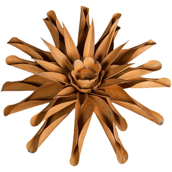 Crafted from handmade cut steel in a rust finish, this wall-mounted piece is designed to make a lasting impression on any space. Whether you choose to hang it in your yard on a wooden fence or the side of your home, you can be sure of its stunning looks and enduring quality. Perfect for both indoor or outdoor decoration, this piece also serves as a conversation starter when guests visit. With its beautiful design and elegant craftsmanship, this piece is sure to become a showstopper in any setting. Add some sophistication to your home today and make an unforgettable impression with our Metal Flower.