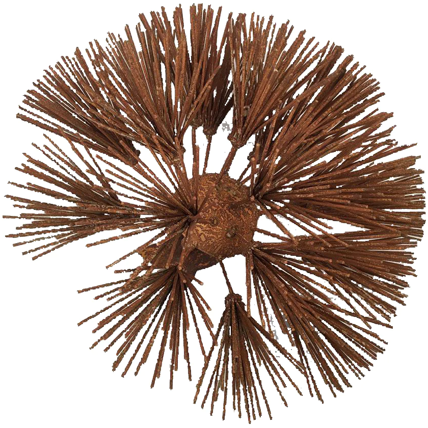 Crafted from handmade cut steel in a rust finish, this wall-mounted piece is designed to make a lasting impression on any space. Whether you choose to hang it in your yard on a wooden fence or the side of your home, you can be sure of its stunning looks and enduring quality. Perfect for both indoor or outdoor decoration, this piece also serves as a conversation starter when guests visit. With its beautiful design and elegant craftsmanship, this piece is sure to become a showstopper in any setting. Add some sophistication to your home today and make an unforgettable impression with our Metal Flower.