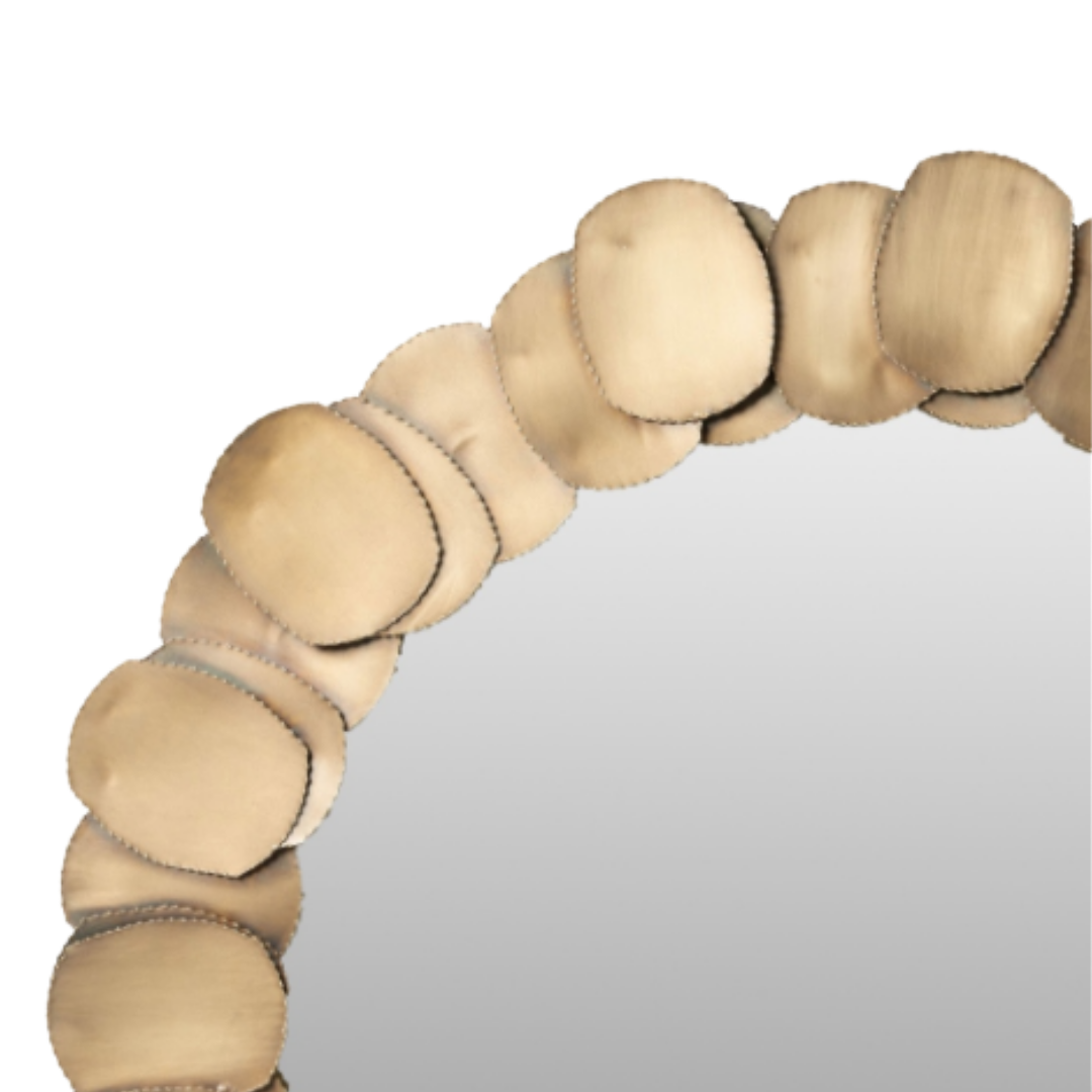 Elevate your space with the Solenne Brass Petal Mirror, where sculpted brass forms a graceful halo of soft, organic shapes—each one catching light like sun-warmed river stones. This striking yet serene accent piece effortlessly blends great craftsmanship with timeless elegance, making it the perfect finishing touch for refined, relaxed interiors.