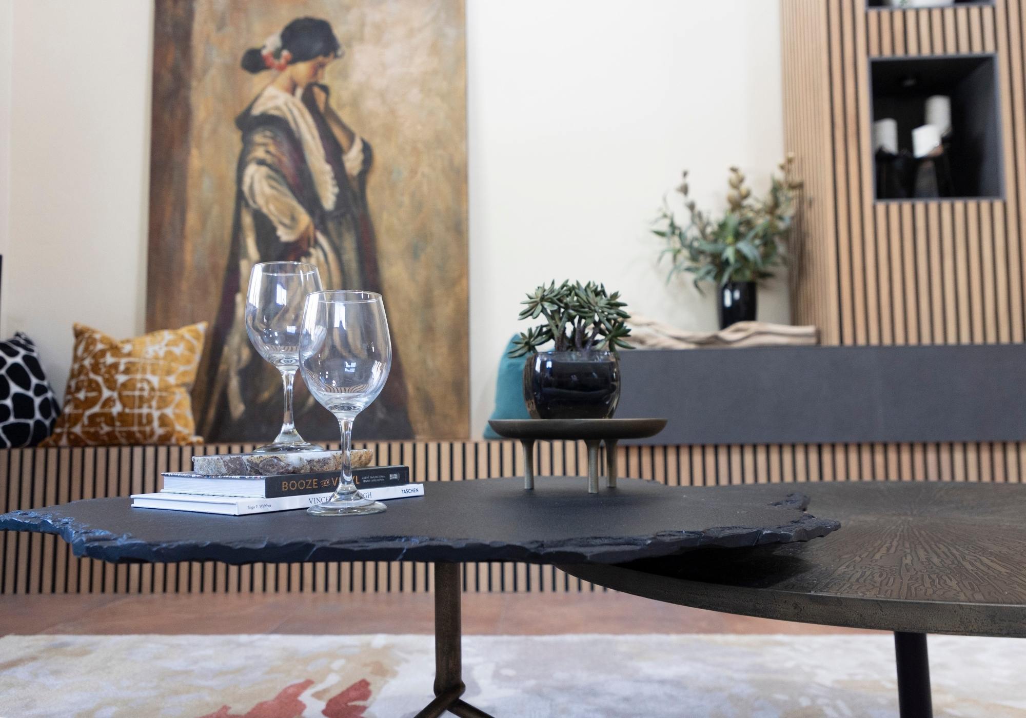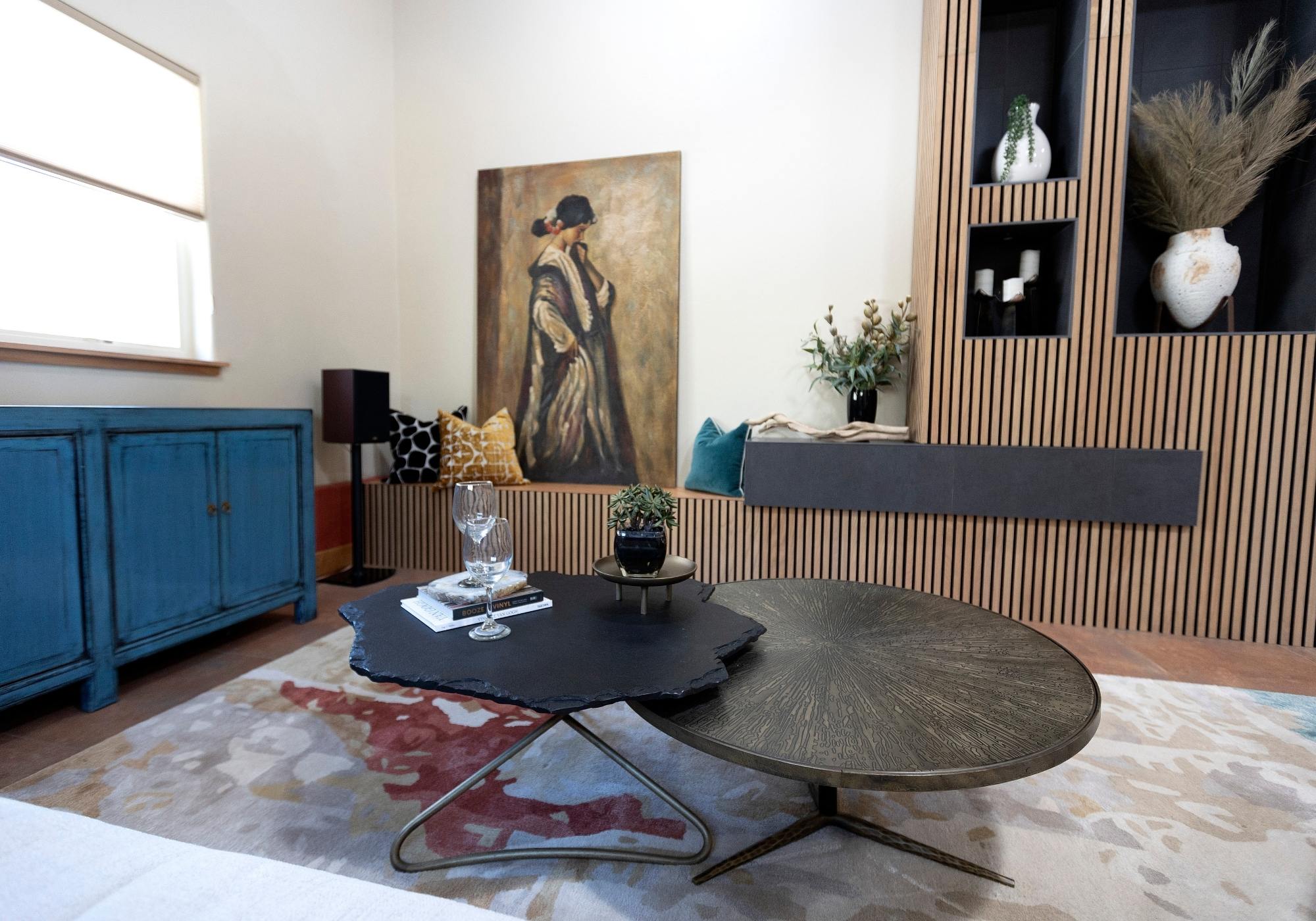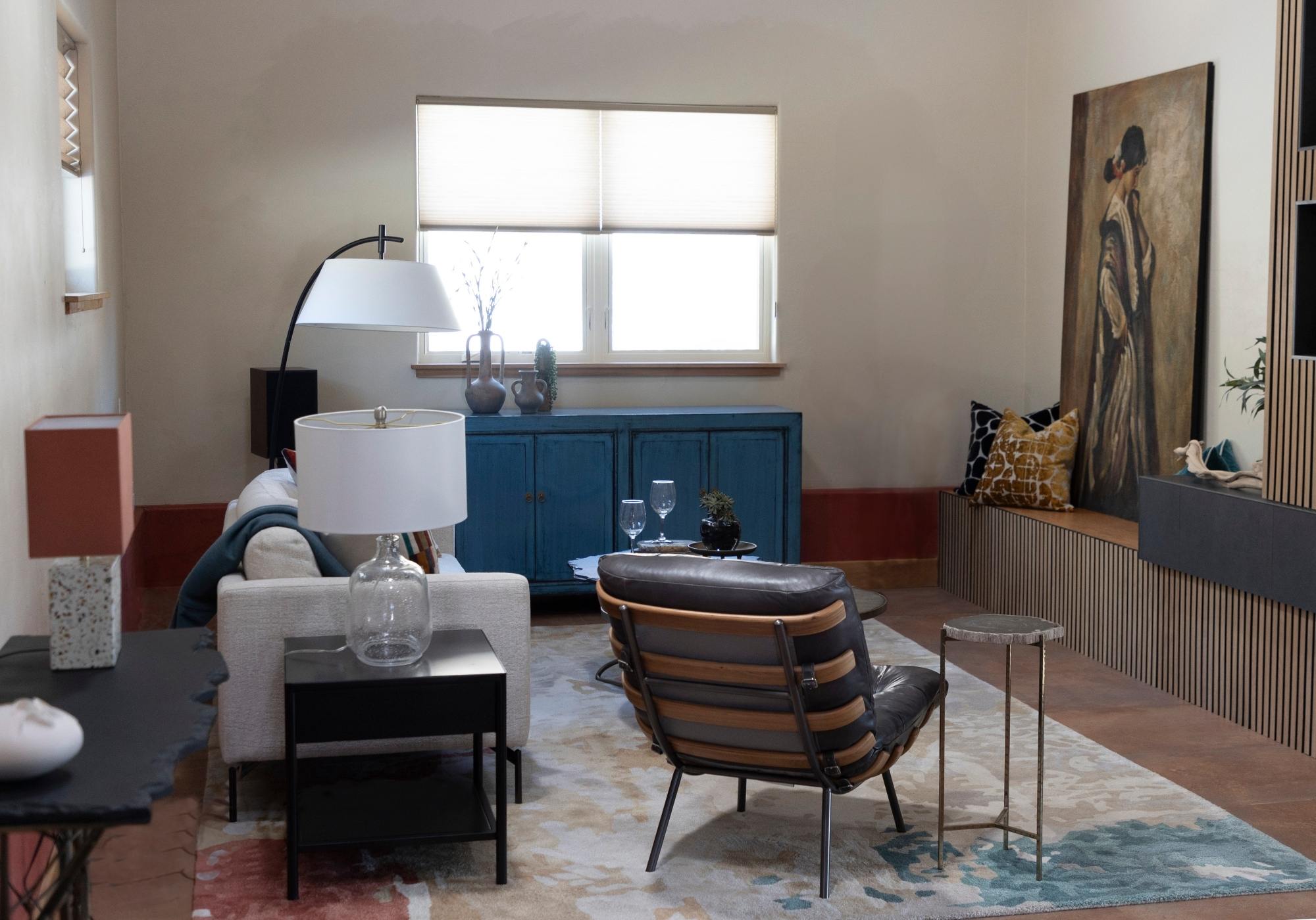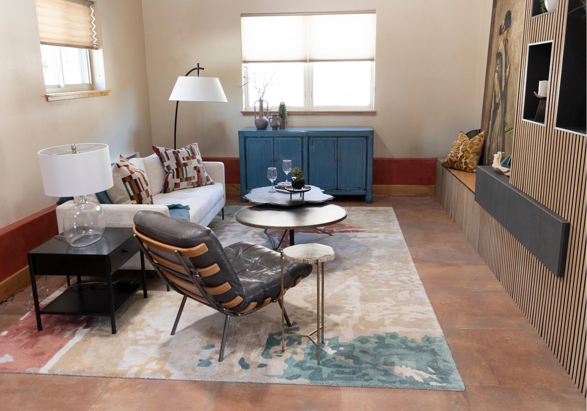 This project began with our client’s vision of transforming an underutilized room into a warm and inviting gathering space for conversation, music, and relaxation. Anchored by a cherished Hubble Telescope photograph, we crafted a beautifully styled and meaningful environment. A carefully selected palette of neutral tones, vibrant accents, layered textures, and organic shapes brought both intimacy and inspiration.
