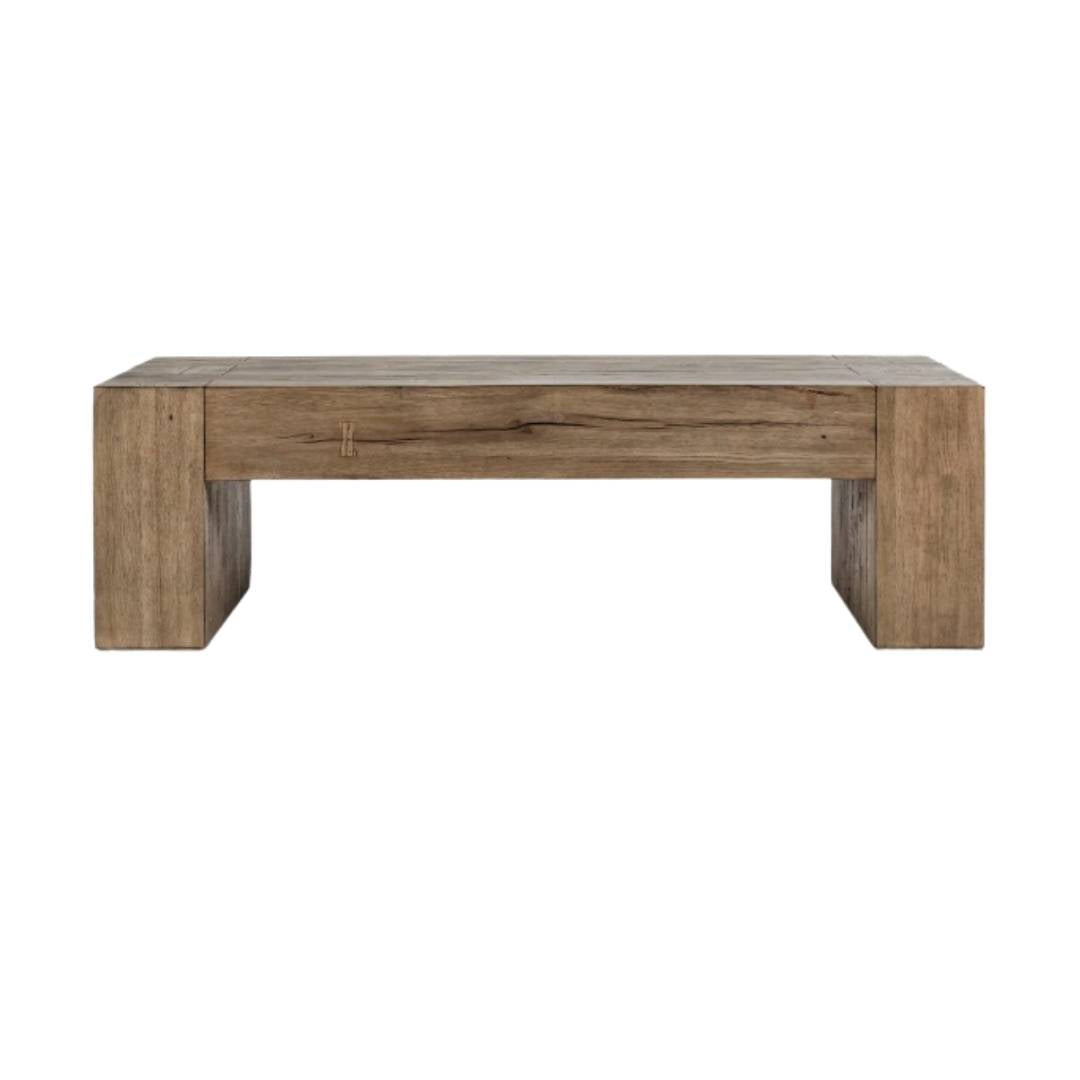 This reclaimed oak coffee table grounds a living space with quiet confidence, blending clean lines and natural character to create a look that feels both elevated and effortlessly livable. Designed to anchor the room without overpowering it, it brings warmth, balance, and timeless appeal that makes the entire space feel thoughtfully finished.