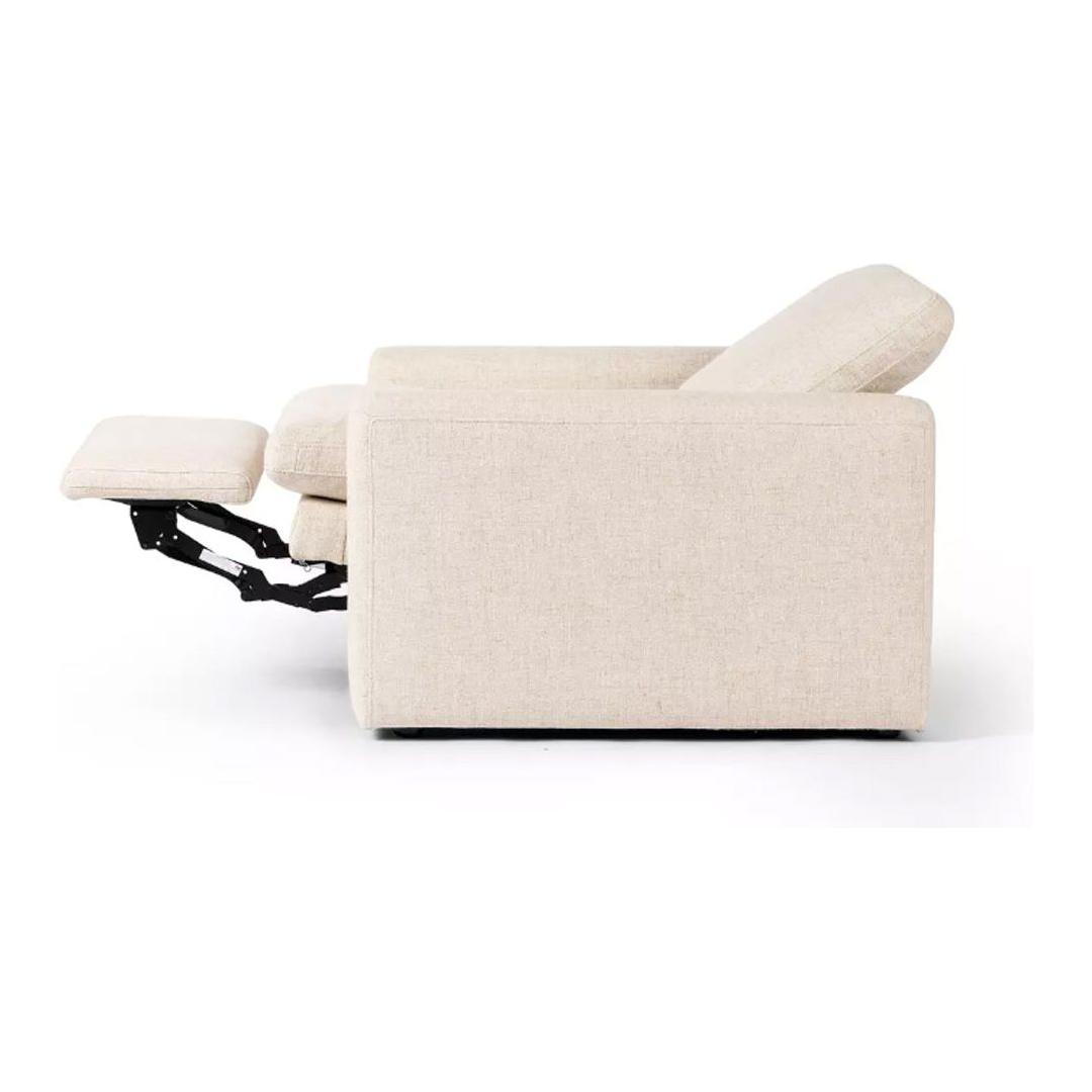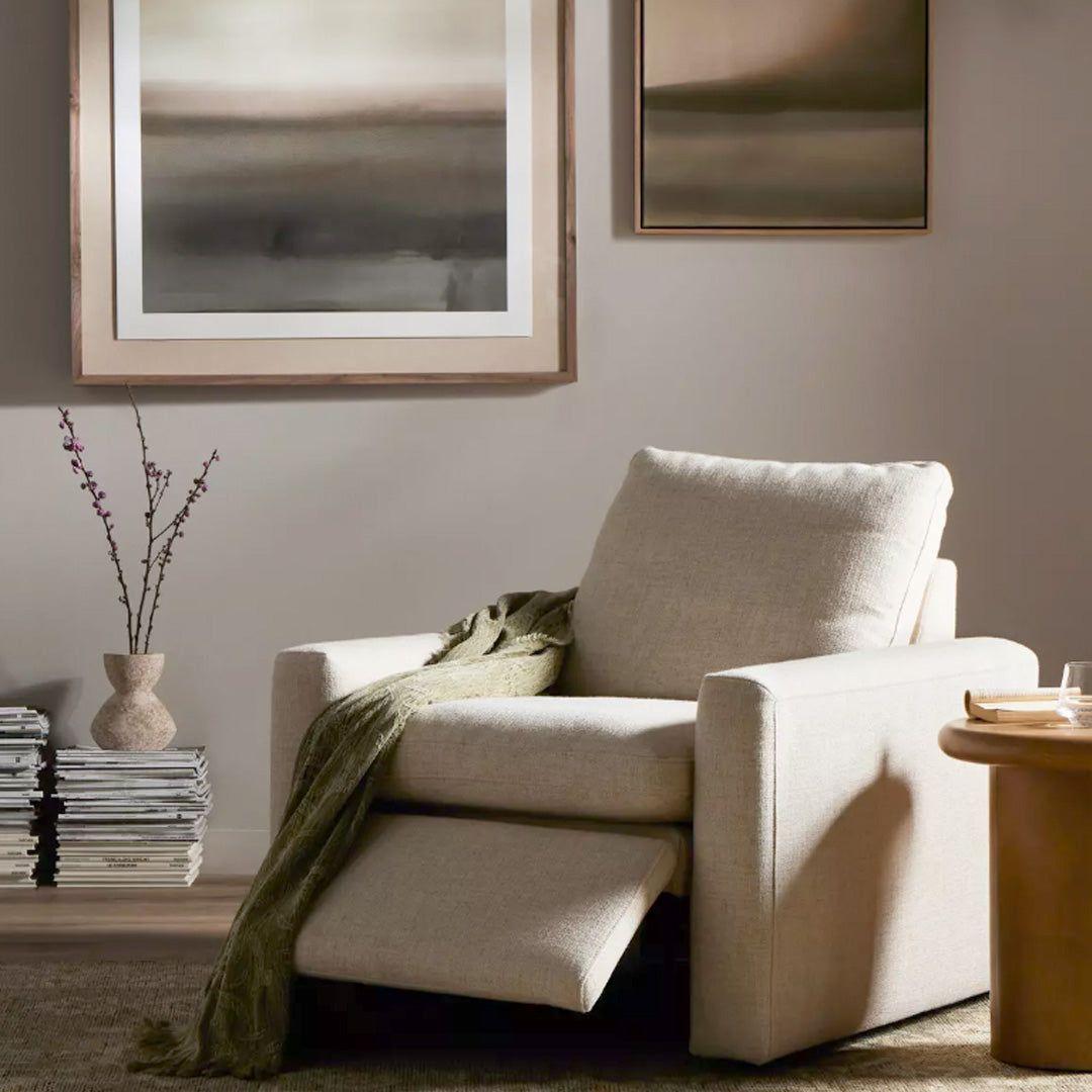 Sophisticated Relaxation: Experience the modern evolution of the classic recliner with our Raphael Power Recliner Accent Chair. Crafted for both style and comfort, this contemporary piece features a sleek design with low arms and a motion footrest, allowing you to unwind in a perfectly tailored position. Its subtle controls seamlessly adjust your seating for optimum relaxation without compromising on elegance.