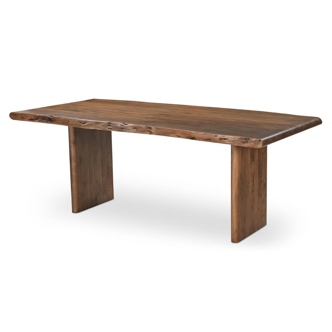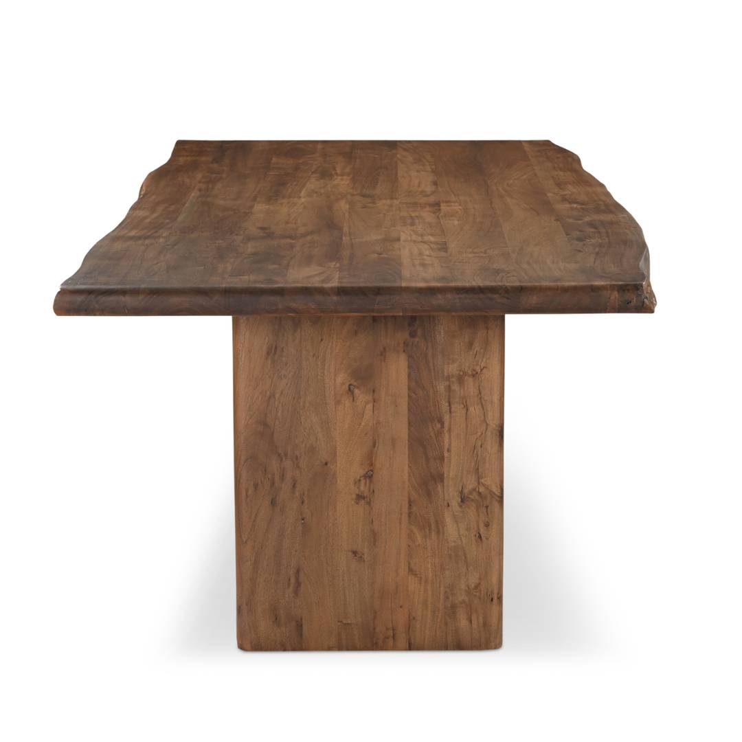 Crafted from solid wood with a natural live edge, the Riverton Dining Table celebrates the organic beauty of its grain and texture. Its substantial pedestal base grounds the piece with quiet strength, while the fluid, hand-finished top brings an artisanal touch to modern and rustic spaces alike.
