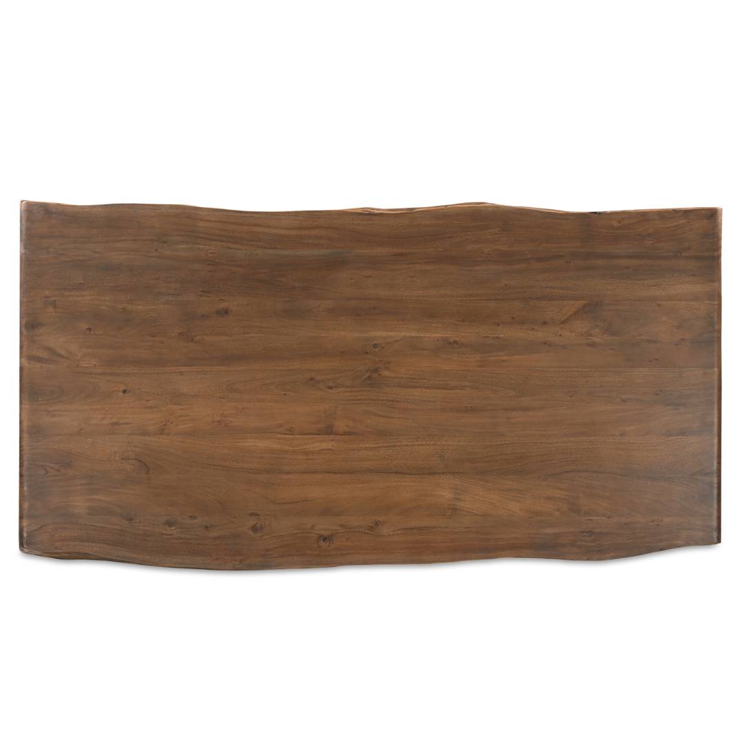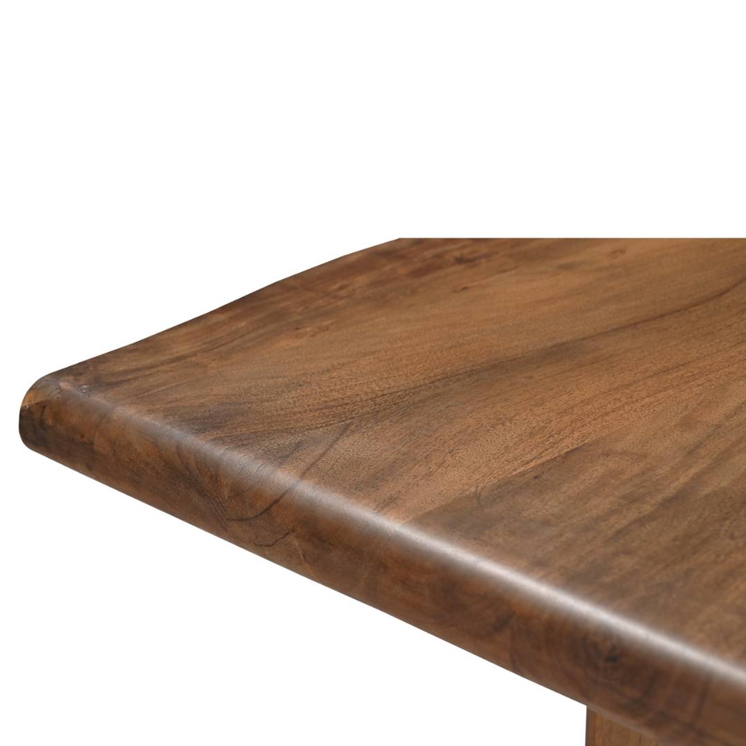 - Live edge tabletop with a thickness of 2.25" with bullnose edge on the two shorter ends
